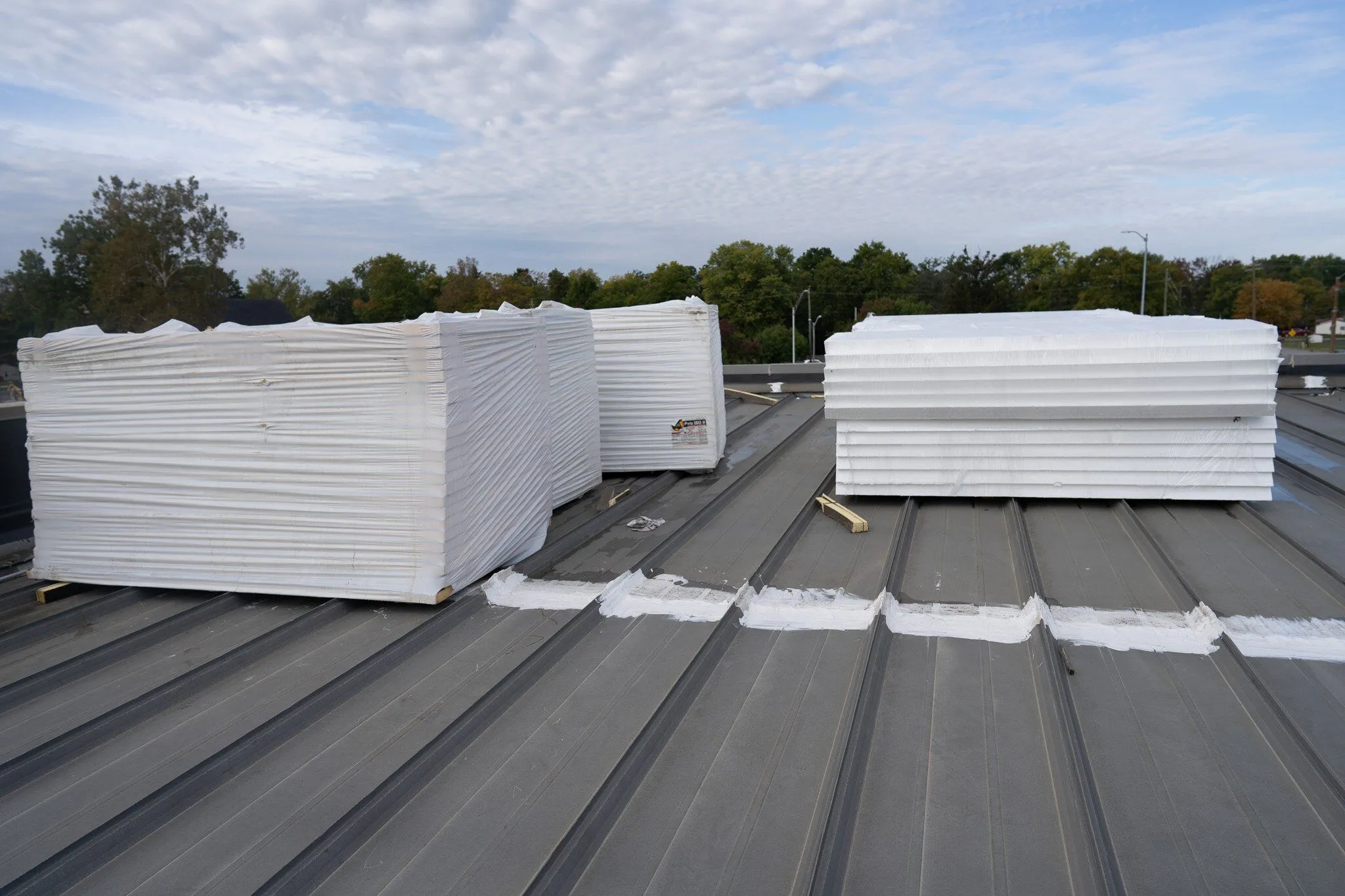 The new roof system is installed over the existing roof with proper attachment and detailing.
